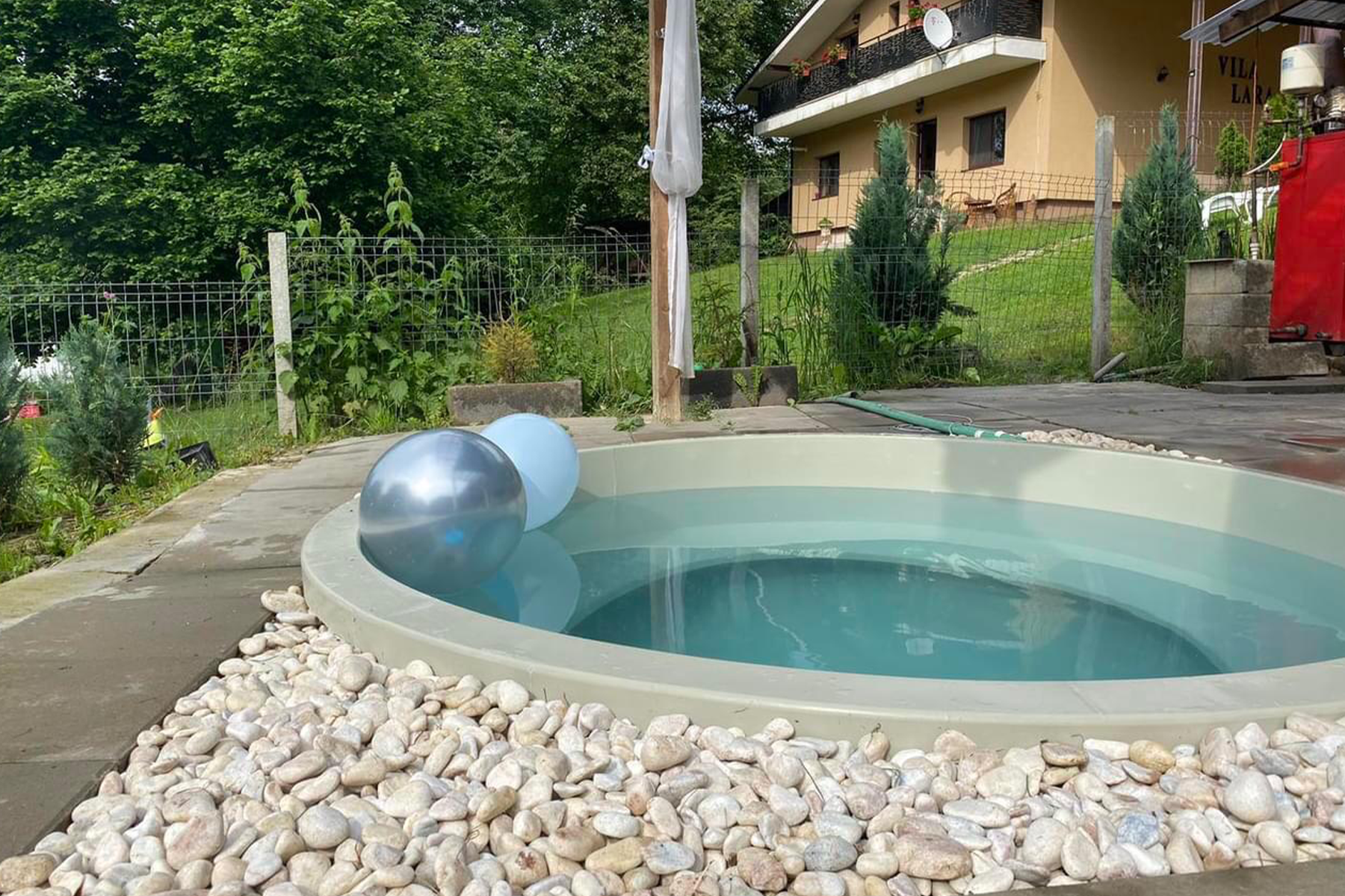 • Bazin încălzit: Un bazin modern, cu apă încălzită între 32-34°C, perfect pentru relaxare în orice anotimp.